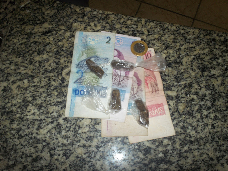 Na abordagem conseguiram prender um menor de idade com ele a quantia de quatro tabletes de maconha mais R$ 23,00 reais em dinheiro fracionado o que para os policiais já caracteriza o tráfico de drogas.